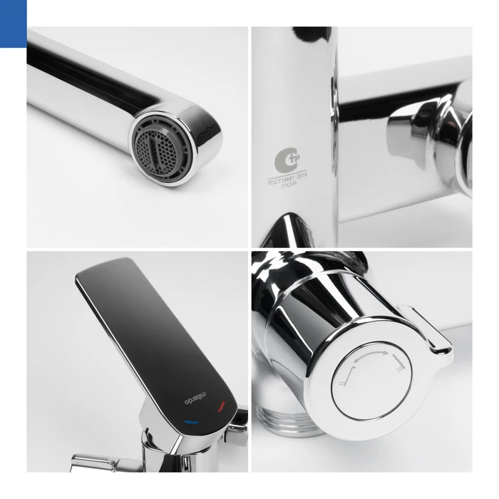 • Оптимальная толщина никель-хромового покрытия защищает смеситель от образования трещин и сколов, продлевает срок его службы.