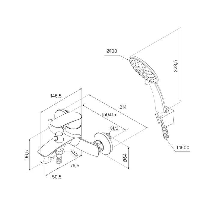 • Ручная лейка из прочного ABS-пластика, ПВХ-шланг (1,5 м) и крепеж идут в комплекте.