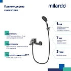 • Гарантия на смеситель Milardo® – 7 лет, на картридж – 3 года, на душевые аксессуары – 1 год.