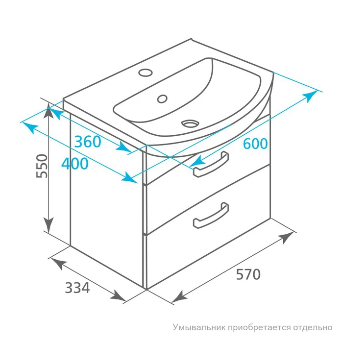 Тумба для ванной комнаты, подвесная. Размеры: 334х570х550 мм (ДхШхВ). Фасад: МДФ 16 мм + эмаль. Боковины: ЛДСП 16 мм. Ящик без доводчика. Упаковка: картон, пленка, пенопластовые уголки. Подходит умывальник 0036000M28.