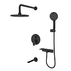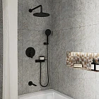 Душевая система Rora создана для тех, кто отдает предпочтение пространству, где нет ничего лишнего. С моделью в трендовом черном цвете легко реализовать наиболее интересные дизайнерские проекты: так, например, излив с ручной лейкой и тропический душ можно разнести по разным стенам. Все внутренние механизмы системы будут спрятаны внутри встраиваемого монтажного блока, видимыми останутся только элементы управления. Душевая система на три выхода – универсальное решение: она подходит для установки как в зоне с ванной, так и душевой зоне.