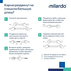 • Карниз Milardo® выполнен из высококачественного алюминия – прочного и легкого материала. Вставки на заглушках по краям штанги выполнены из мягкого пластика и имеют антискользящее покрытие.