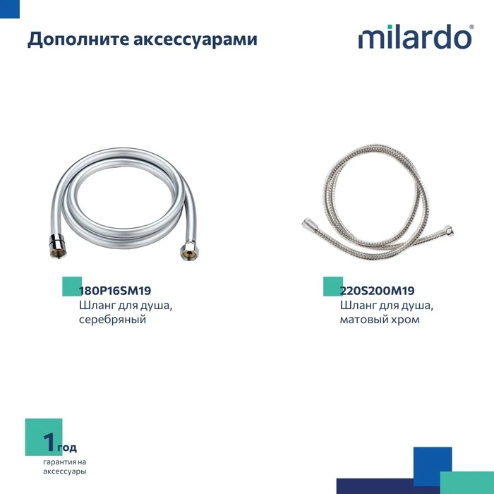 • Гарантия на душевые аксессуары Milardo® – 1 год.