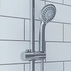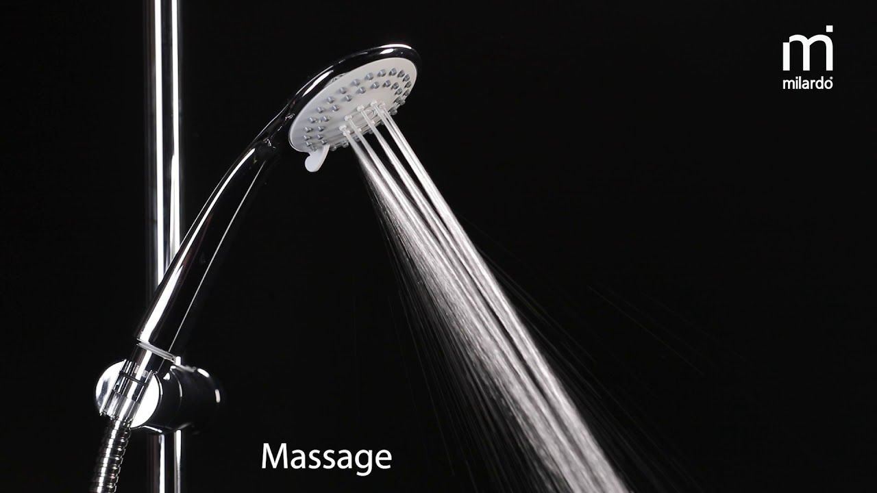 Простота форм и линий душевого гарнитура позволят вписать его в интерьер любой современной ванной комнаты. Стойка выдвигается по длине (от 850 до 1150 мм), что позволяет индивидуально регулировать ее высоту, — удобно и для самых высоких. Поворотный керамический дивертор работает при любом давлении воды, переключая поток воды на верхнюю душевую лейку, ручную лейку с регулируемым наклоном или в комбинированном режиме. Ручная лейка имеет 3 режима работы: Spray, Massage, Spray&Massage.
