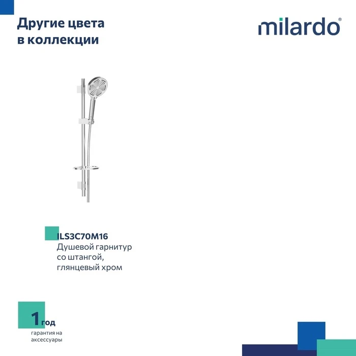 • Гарантия на душевые гарнитуры Milardo® – 1 год.