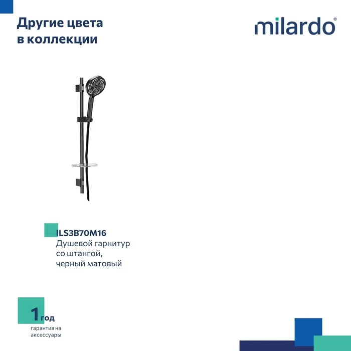 • Гарантия на душевые гарнитуры Milardo® – 1 год.
