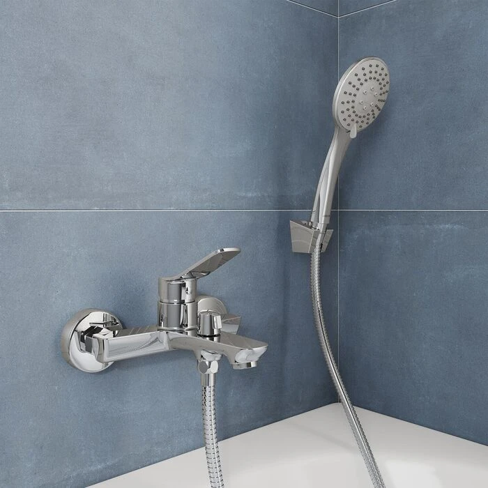 • Лейка для душа с держателем, ПВХ-шланг (1,5 м) в оплетке из нержавеющей стали и крепеж идут в комплекте.