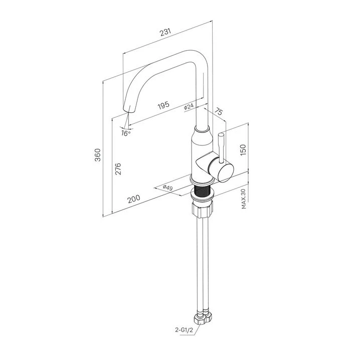 Благодаря специально подобранному углу наклона и плавному изгибу излива смеситель подойдет и для глубокой кухонной мойки.