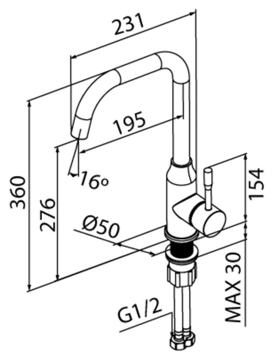 • Гибкая подводка и крепеж идут в комплекте.