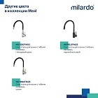 • Гладкий излив Milardo® приятен на ощупь, его просто содержать в чистоте благодаря отсутствию стыков и высокой устойчивости материала к грибку. Для ухода за смесителем подойдут обычные моющие средства без использования агрессивных химических средств и средств с абразивами.