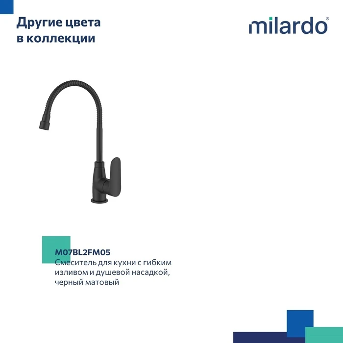 • Качественный механизм смешивания воды смесителя Milardo® рассчитан на более чем 70 000 циклов работы – это не менее 15 лет эксплуатации семьей из трех человек.