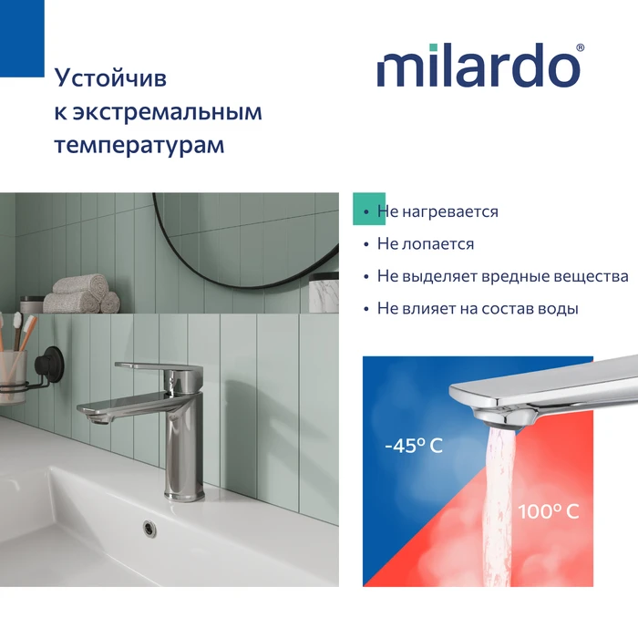 • Гарантия на смеситель Milardo® – 5 лет, на картридж – 3 года.
