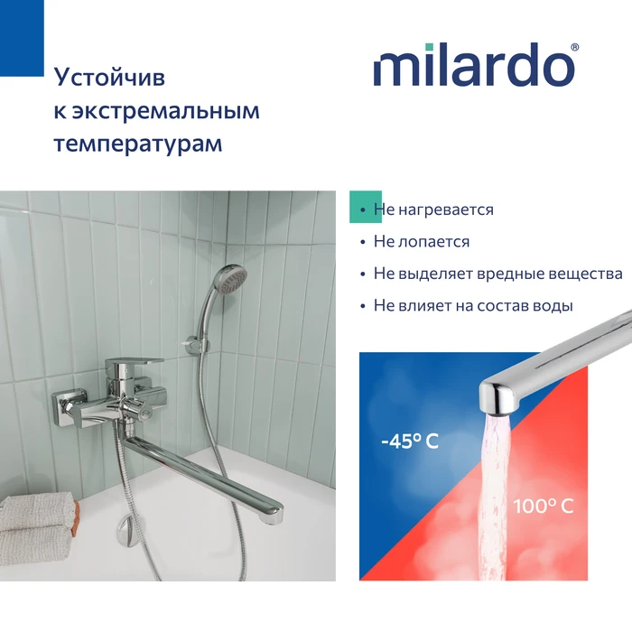 Высокая ударопрочность сохраняется даже при экстремально низких температурах, что помогает подготовиться к дачному сезону в любых условиях или избежать протечек при отключении горячего водоснабжения в квартире.
