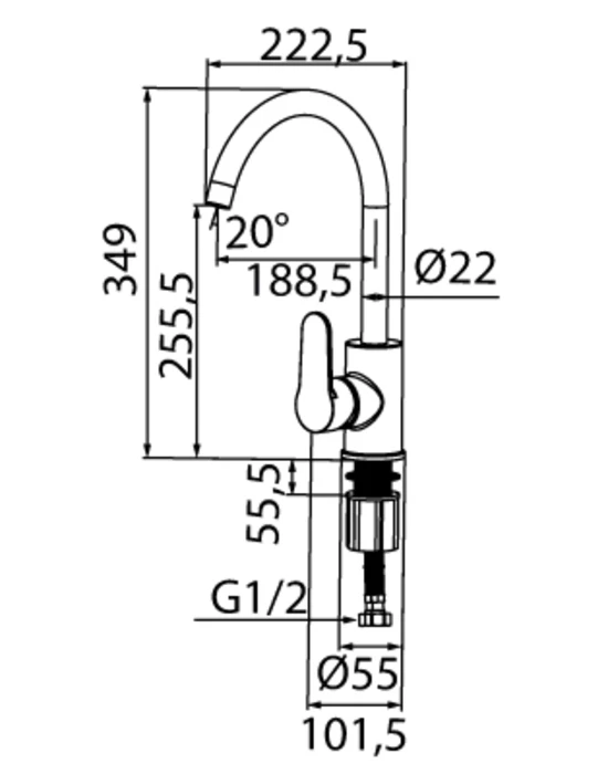| 5 | Излив для смесителя, кухня, J-образный, нерж. сталь, 199 мм, поворотный, хром | 995J20C5SM-3 |