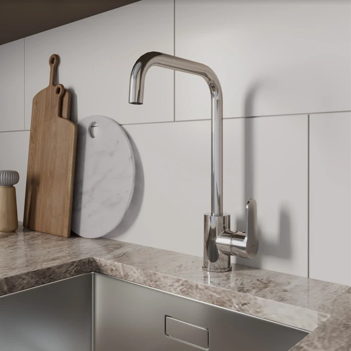 Коллекция Poli создана под проекты современных интерьеров. Геометрическая форма излива этой модели лучше всего подойдет к мойкам прямоугольных и квадратных форм. Корпус смесителя Poli выполнен из современного полимерного сплава. Отличить такой смеситель легко по небольшому весу. А вот найти разницу в эксплуатационных характеристиках под силу только эксперту.