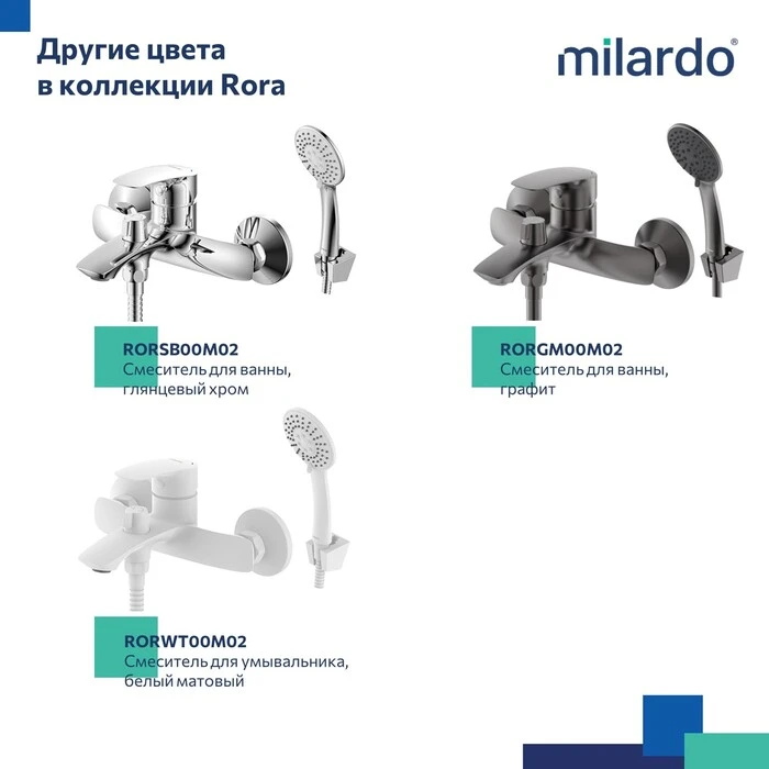 • Гарантия на смеситель Milardo® – 7 лет, на картридж – 3 года, на душевые аксессуары – 1 год