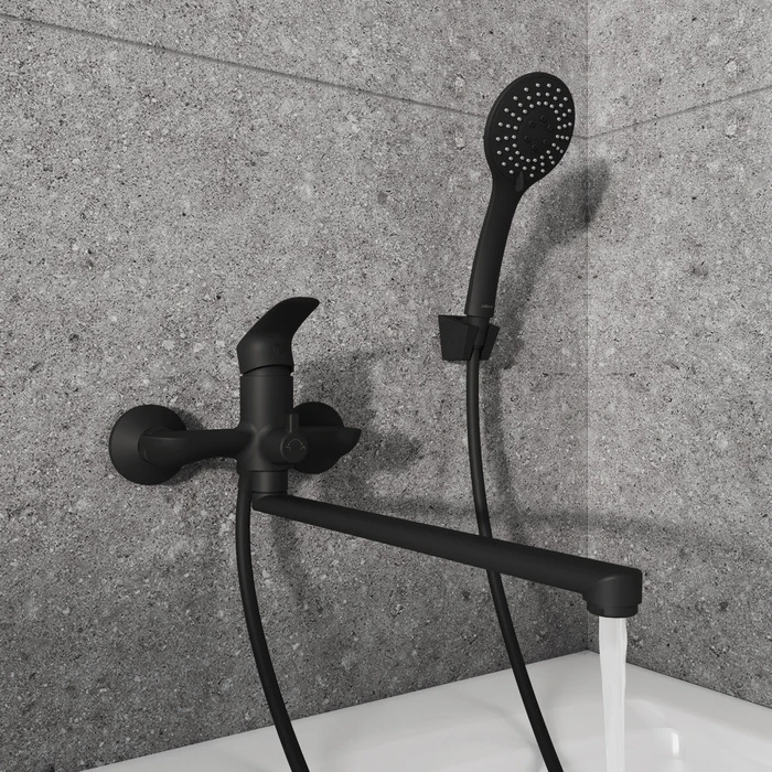 Смеситель для ванны Рора (Rora) отличается универсальным характером: основной акцент в его дизайне приходится на плавные линии корпуса и трендовый черный цвет.