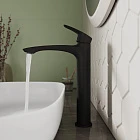 Смеситель для умывальника Rora отличается универсальным характером: основной акцент в его дизайне приходится на плавные линии корпуса и трендовый цвет. Модель в черном цвете одинаково выигрышно смотрится на контрастных белоснежных раковинах и дополняет собой однотонную керамику. Конструкция высокого смесителя обеспечивает дополнительный комфорт в ежедневном использовании и подходит для установки с накладными раковинами-чашами. В комплекте гибкая подводка и крепеж.