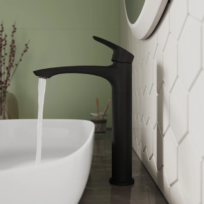 Конструкция высокого смесителя обеспечивает дополнительный комфорт в ежедневном использовании и подходит для установки с накладными раковинами-чашами. В комплекте гибкая подводка и крепеж.