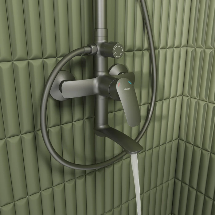 Смеситель для ванны Rora отличается универсальным характером: основной акцент в его дизайне приходится на плавные линии корпуса и трендовый графитовый цвет. Большой диаметр ( 250 мм) верхней лейки способствует равномерному распределению струи. Увеличенный вынос верхнего душа (394 мм) дарит максимальную свободу движений. Поворотный излив эстетично встроен в корпус, вода из него поступает в ванну под комфортным углом.