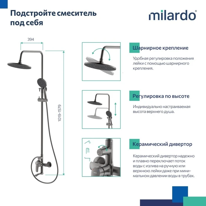 • Гарантия на смесители Milardo® – 7 лет, на картридж – 3 года, на душевые аксессуары – 1 год.