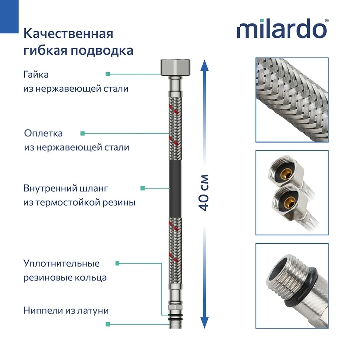 • Качественный механизм смешивания воды смесителя Milardo® рассчитан на более чем 70 000 циклов работы – это не менее 15 лет эксплуатации семьей из трех человек.