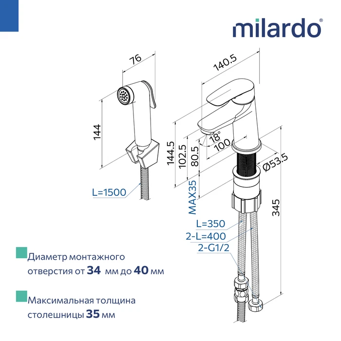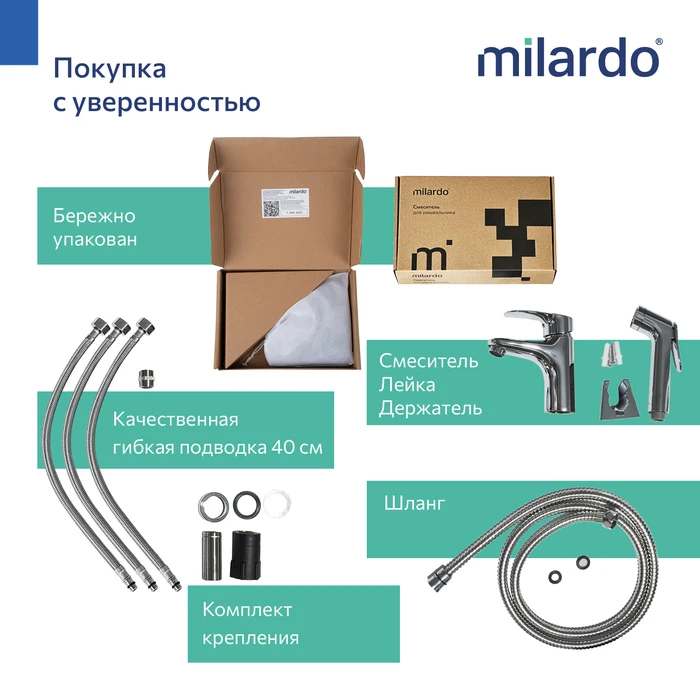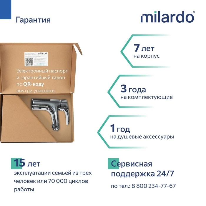 • Гарантия на смесители Milardo® – 7 лет, на картридж – 3 года, на душевые аксессуары – 1 год.