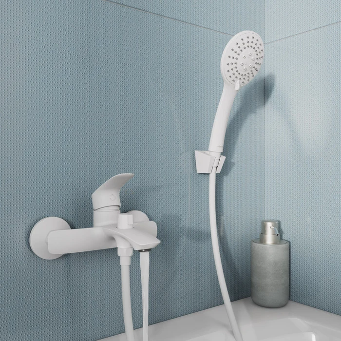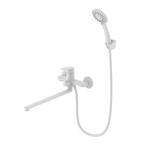 Смеситель для ванны Rora отличается универсальным характером: основной акцент в его дизайне приходится на плавные линии корпуса и трендовый белый цвет. Модель с коротким фиксированным изливом надежна и удобна в ежедневном использовании. Интенсивность и температура потока легко регулируются удобной ручкой смесителя. Поворотный дивертор работает при любом давлении воды, переключая поток воды на большую душевую лейку ( 100 мм) или в комбинированном режиме.