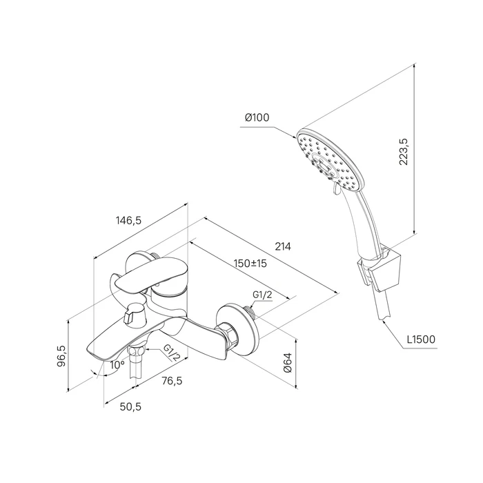 • Ручная лейка из прочного ABS-пластика, ПВХ-шланг (1,5 м) и крепеж идут в комплекте.