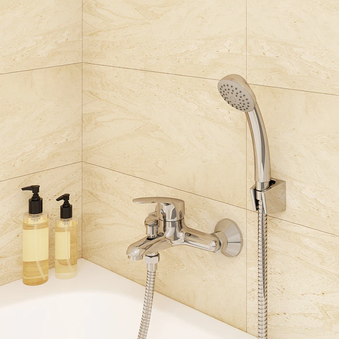 Коллекция Simp отличается простотой форм и естественной плавностью линий. Хромированный смеситель для ванны Simp подойдет для любого интерьера в классическом или современном стиле. Управлять температурой и напором воды невероятно легко даже мыльной рукой с помощью удобной ручки округлой формы. Вытяжной дивертор смесителя работает при любом давлении воды, переключая поток воды на душевую лейку ( 67 мм) или в комбинированном режиме. Незапланированный душ или мокрый пол в ванной не страшны благодаря надежному фиксированному изливу и механизму автовозврата дивертора в положение «излив». В комплекте ручная лейка из прочного ABS-пластика, ПВХ-шланг (1,5 м) в оплетке из нержавеющей стали и все необходимое для установки смесителя Simp без лишних затрат.