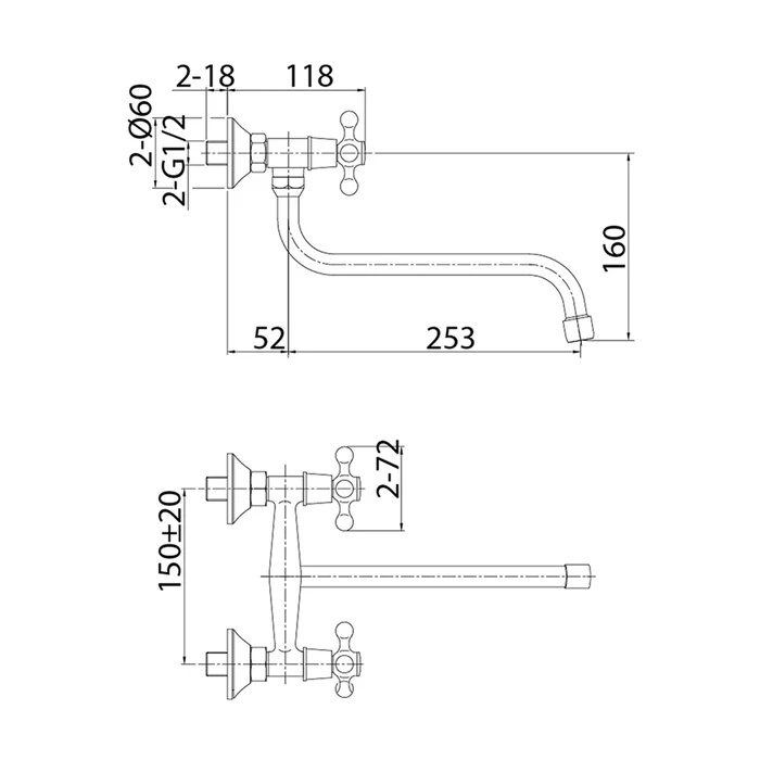 | 6 | Излив для смесителя, кухня, S-образный, нерж. сталь, 253х160 мм, поворотный, хром | 995S25C5SM |