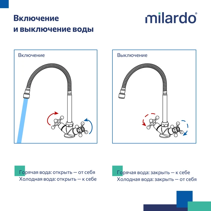 • Мы серьезно относимся к безопасности вашего здоровья: материалы смесителей Milardo® не содержат вредных веществ, соответствуют ГОСТам и гигиеническим требованиям.