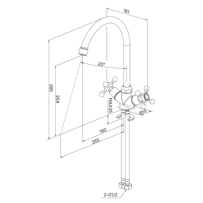 Смеситель для кухни Duplex традиционного дизайна с удобными крестообразными ручками. Угол поворота ручек 180о обеспечивает точную регулировку температуры и напора воды, а термоизоляция не позволяет им нагреваться – взрослые и особенно дети защищены от случайных ожогов.