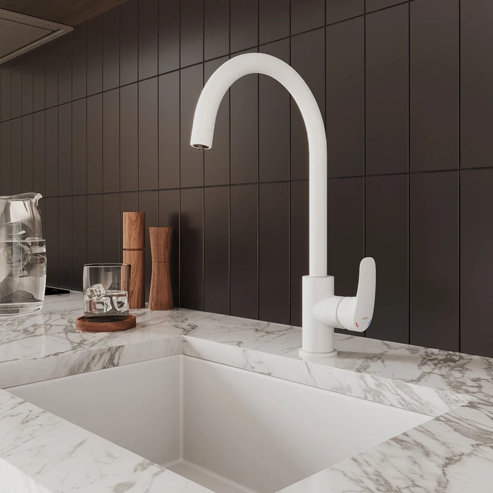 • Электрофоретическое матовое покрытие делает поверхность смесителя устойчивой к условиям высокой влажности – такой смеситель прослужит дольше и сохранит свой первоначальный внешний вид.