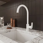 Смеситель для кухни Rora с отдельным каналом для фильтрованной воды отличается универсальным характером: основной акцент в его дизайне приходится на плавные линии корпуса и трендовый белый цвет. К нему можно подключить фильтр любого производителя и наслаждаться чистой водой прямо из смесителя. Переключение между режимами подачи воды осуществляется только одной ручкой. Модель не требует дополнительного отверстия в мойке под фильтр. Гибкая подводка и крепеж в комплекте.