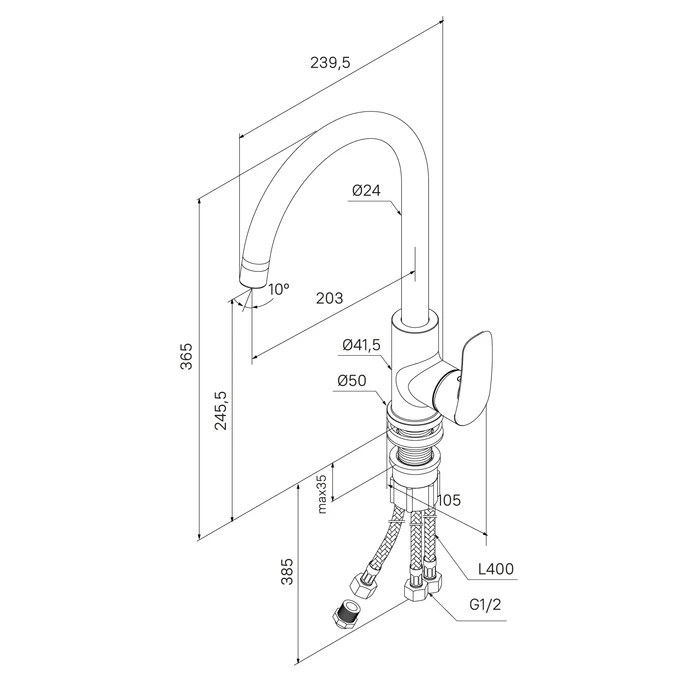 | 9 | Гибкая подводка, M8x1, F1/2, 400 мм | 926M8040SM |