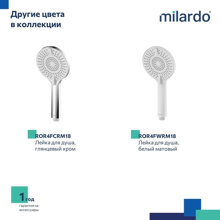 • Гарантия на ручные лейки Milardo® – 1 год.