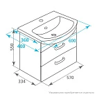 Тумба для ванной комнаты, подвесная. Размеры: 334х570х550 мм (ДхШхВ). Фасад: МДФ 16 мм + эмаль. Боковины: ЛДСП 16 мм. Ящик без доводчика. Упаковка: картон, пленка, пенопластовые уголки. Подходит умывальник 0036000M28.
