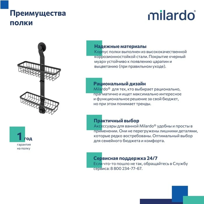 • Гарантия на аксессуары для ванной комнаты Milardo® – 1 год.