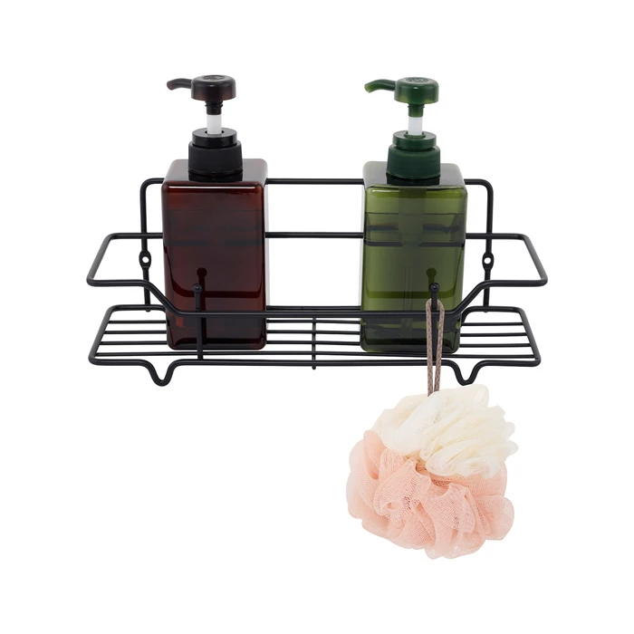 За счет устойчивых упоров снизу полку можно не только крепить к стене, но и устанавливать на плоскую поверхность. Решетчатое дно не даст скапливаться лишней влаге, что предотвратит появление плесени.