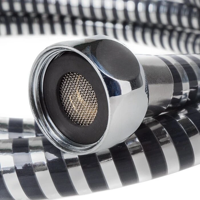 Черный душевой шланг для использования в помещениях с небольшой душевой зоной или ванной. Защита от перекручивания и армирование алюминиевой лентой значительно увеличивают срок его службы – шланг легко выдержит ежедневную эксплуатацию всей семьей.