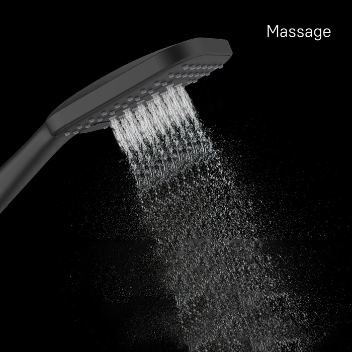 Прямоугольная лейка для душа Ideal Spa станет оптимальным решением для современных интерьеров. Лейка лаконичной формы будет эффектно сочетаться с квадратной сантехникой. Трендовый черный цвет станет ярким акцентом в пространстве ванной. Для комфортного принятия душа в лейке предусмотрено 3 режима работы: Spray, Massage и Spray&Massage. Ими удобно управлять выступающей кнопкой на лицевом диске.