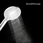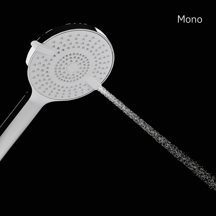 Стильная лейка для душа из коллекции Rora с большим выбором режимов работы: Spray, Massage, Spray&Massage и Mono. В 4 режимах задействована буквально каждая форсунка (попеременно или вместе) — все для максимально комфортного принятия душа. Отдельного внимания заслуживает новый Mono-режим (моноструйный) – направленная под большим давлением струя воды. Такой режим отлично подойдет для антицеллюлитного и противовоспалительного массажа, уборки ванной. Переключение между режимами осуществляется поворотом диска за рычаг.
