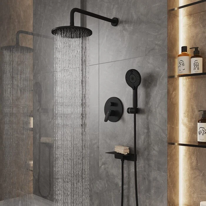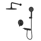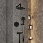 Душевая система Rora создана для тех, кто отдает предпочтение пространству, где нет ничего лишнего. С моделью в трендовом черном цвете легко реализовать наиболее интересные дизайнерские проекты: так, например, панель управления, верхнюю и ручную лейки можно разнести по разным стенам. Все внутренние механизмы будут спрятаны внутри встраиваемого монтажного блока, видимыми останутся только элементы управления. Душевая система на два выхода предназначена для подключения двух точек водопотребления: ручного и тропического душа.