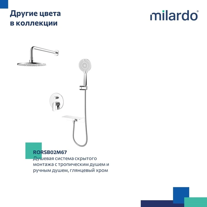 • Гарантия на душевую систему Milardo® – 7 лет, на водозапорный механизм – 3 года, на душевые аксессуары – 1 год.