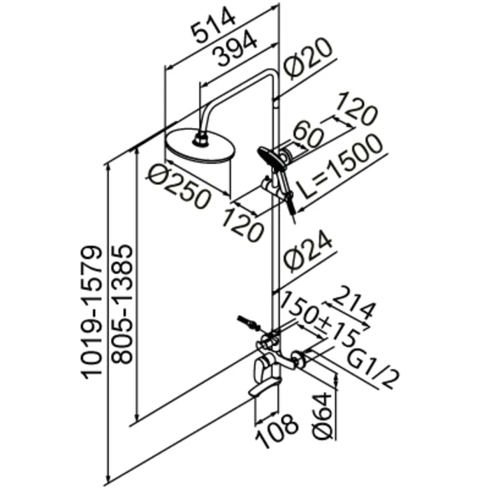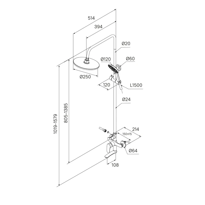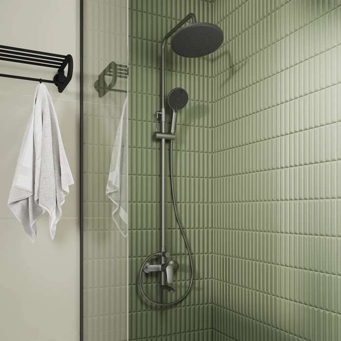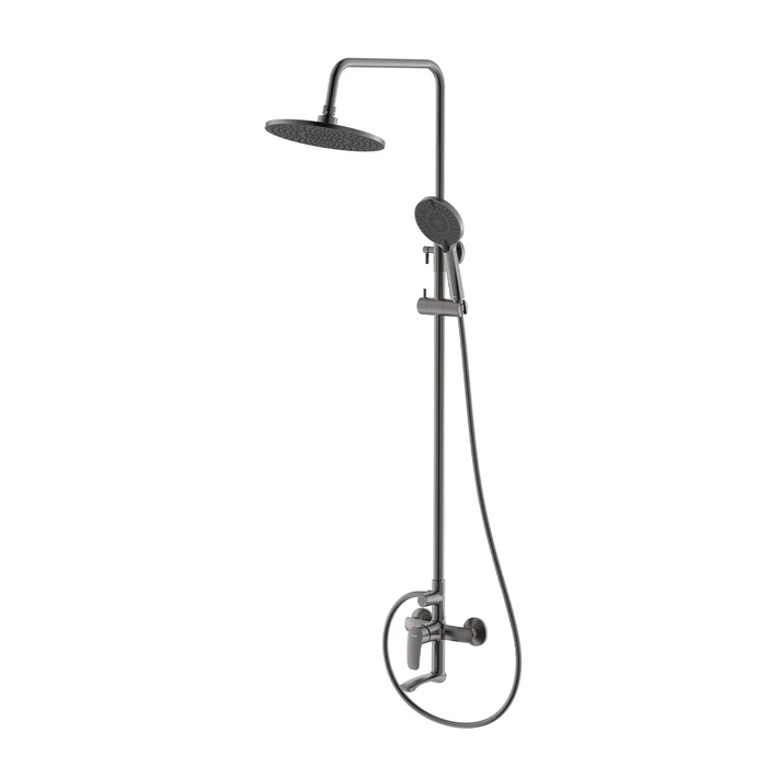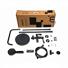 • Четырехрежимная ручная лейка ( 120 мм) с держателем, ПВХ-шланг (1,5 м), штанга для душа с возможностью регулировки по высоте и крепеж идут в комплекте.