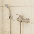 Смеситель для душа Simp отличается простотой формы и естественной плавностью линий. Он подойдет для интерьера в классическом или современном стиле. В комплекте лейка для душа, шланг и держатель для лейки.