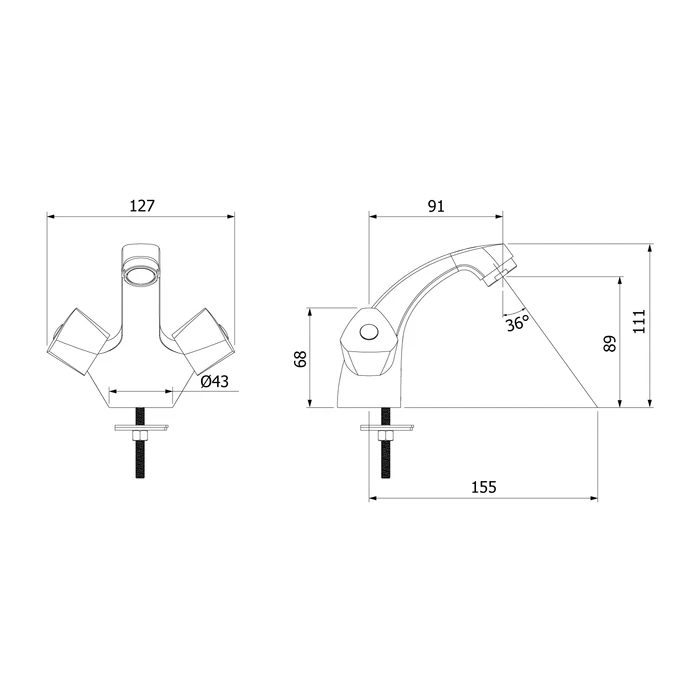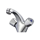 Компактный (всего 111 мм в высоту) смеситель для умывальника Tring с удобными ручками классической треугольной формы. Угол поворота ручек 180о обеспечивает точную регулировку температуры и напора воды, а термоизоляция не позволяет им нагреваться – взрослые и особенно дети защищены от случайных ожогов. Надежный фиксированный излив подойдет для неглубоких раковин.