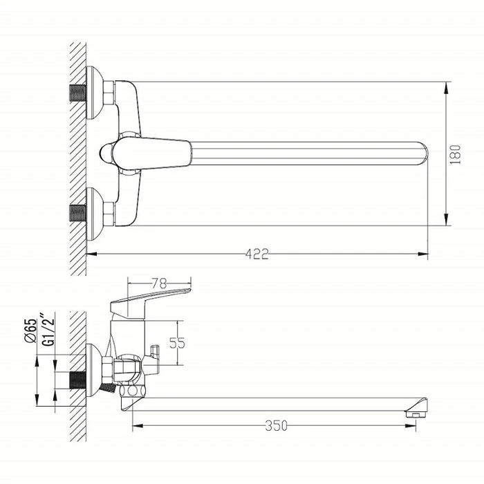 Лаконичный кран для ванной, для тех, у кого кран устанавливается и на ванну, и раковину, как у нас.Носик достаточно длинный,так что длины...