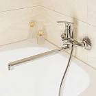 Смеситель для ванны Simp отличается простотой формы и естественной плавностью линий. Он подойдет для любого интерьера в классическом или современном стиле. Поворотный излив эстетично интегрирован в корпус, вода из него поступает в ванну под комфортным углом. В комплекте лейка для душа (67 мм), ПВХ-шланг (1,5 м) в оплетке из нержавеющей стали и держатель для лейки.